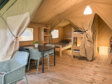 Op Hvalpsund Familie Camping staan Vodatent safaritenten die van alle gemakken zijn voorzien. De safaritent biedt ruimte aan 5 personen en is ingericht met houten meubels, een sfeervolle leefruimte en twee slaapcabines: één met een tweepersoonsbed en één met een stapelbed en eenpersoonsbed. In de volledig uitgeruste keuken vind je een 4-pits kooktoestel, koelkast, koffiezetapparaat en waterkoker. De keuken is verrijdbaar, zodat je ook buiten kunt koken onder de luifel. Buiten op de veranda geniet je van lange zomeravonden met uitzicht over het Deense landschap. De safaritent combineert het comfort van een kant-en-klare accommodatie met de charme van het kamperen midden in de natuur: precies wat glamping in Denemarken zo bijzonder maakt.